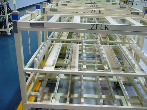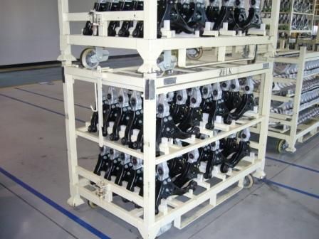 物流台车存放的产品陈列醒目,在运输中:一方面对物料的安全起到保护作用。另一方面不会使已分拣配备好的产品导致杂乱。装卸十分省力;轮子通