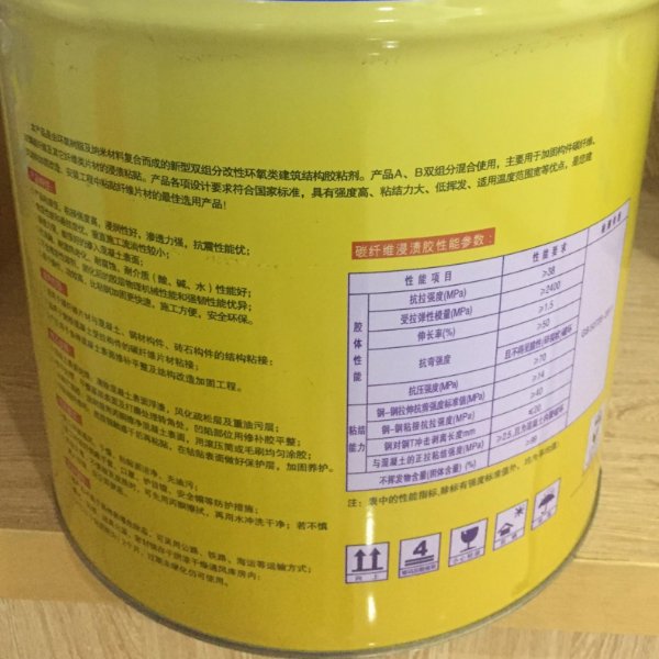 碳纤维加固补强。产品具有优越的浸润性和渗透性,粘性好,浸透力强,能很好地渗入混凝土表面缝隙,与混凝土结合力强;粘结力大,强度高,触变性能和悬挂度优,低挥发、垂直施工流淌性较小,适用温度范围宽;抗老化、耐介质性能好,耐腐蚀,抗震性能优;操作方便、简单,清洁环保,固化后的胶层物理机械性能和强韧性能优异。