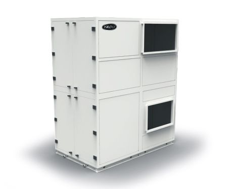 风量10000m3/h,电压380V,功率8000W,电流17A,机外余压380Pa,热交换效率70%,噪 声71dB,重量950kg,外形尺寸180*99.8*215.2CM,安装方式:立柜式。