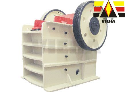 机主要由机架、动颚、偏心轴、颚板、肘板等零部件组成。电动机通过三角皮带传动偏心轴旋转,使动颚按照已调好的轨迹进行运动,从而将破碎腔内物料予以破碎。
