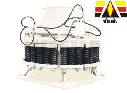 圆锥破碎机在不可破异物通过破碎腔或因某种原因机器超载时,圆锥破碎机弹簧保险系统实现保险,圆锥破碎机排矿口增大。异物从圆锥破碎机破碎腔排出,如异物卡在排矿石可使用清腔系统,使排矿继续增大,使异物排出圆锥破碎机破碎腔。圆锥破碎机在弹簧的作用下,排矿口自动复位,圆锥破碎机机器恢复正常工作。破碎腔表面铺有耐磨高锰钢衬板。排矿口大小采用液压或手动进行调整。