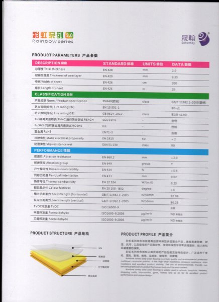 2、采用新型压延工艺,严格控制花色均匀性和颜色差异度;