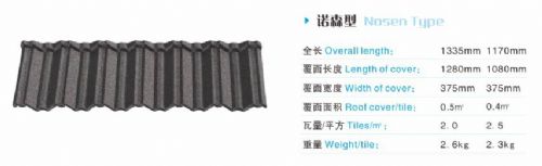 钢板为基层,表面覆着经高温陶化上色工艺的彩色蛭石,多层复合加工而形成的具现代感的环保屋顶材料。