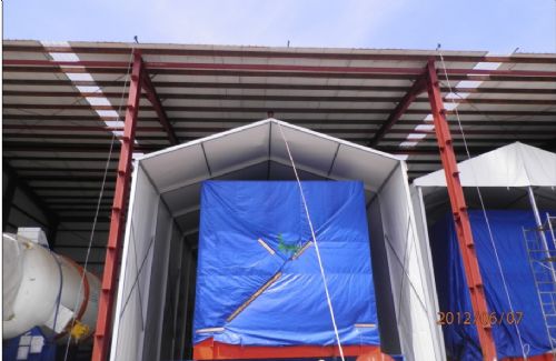 铝合金框架,钢部件连接,PVC篷布高频焊接,基座固定,力学性能超强。
