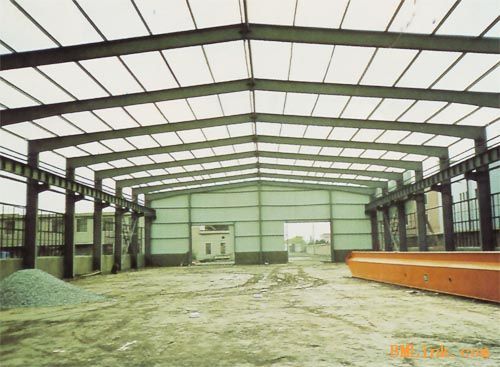 1、重型工业厂房:跨度和柱距都比较大 或设有繁重工作制吊车或大吨位吊车 或具有2~3层吊车的厂房 以及某些高温车间 宜采用钢吊车梁 钢屋架及钢柱等构件以至全
