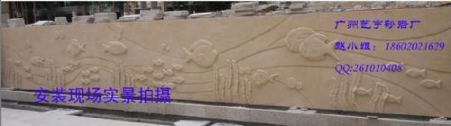 6成品做好后砌边。7包装后出货。安装方法有两种:1把浮雕挂件按图案拼接好,每小块相对映的光滑位置上各打一个