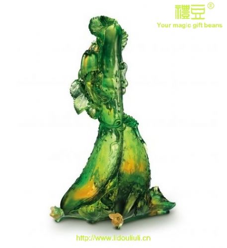 整体采用琉璃脱蜡烧制中的琉璃粉块烧制,粉块烧制的好处,是在琉璃面上可以看到一层一层的波纹感,顶部的二个耳环,是琉璃制作的难度所在,2个耳环需要模套模使其形成一体并需额外增加2个料口,烧制的成功率不到20%,正因为成品率更显其珍贵,中间福字四周镂空面单根的直径不超过5毫,此作品镂空面代表了行业的顶尖技术