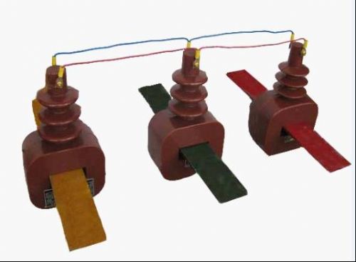 零序电流互感器,由三相电流互感器组成。一次三相绕组由被测线路的三相导线代替。一次导线与二次绕组之间的绝缘由树脂浇注成型。中间预留的方孔供一次导线铝(铜)排穿过,互感器悬挂固定于一次导线上,具有体积小、重量轻、安装方便。