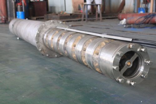 机组由:水泵、潜水电机(包括电缆)、输水管和控制开关四大部分组成。潜水泵为单吸多级立式离心泵:潜水电机为密闭充水湿式、立式三相鼠笼异歩电动机,电机与水泵通过爪式或中.键筒式联轴器直接;配备有不同规格的三芯电缆:起动设备为不同容量等级的空气开关和自耦减压起动器、输水管为不同直径的钢管制成,采用法兰联接,高扬程电泵釆用闸阀控制。