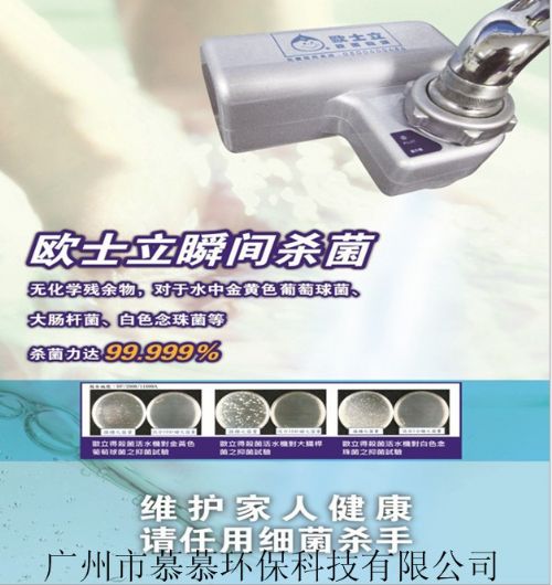 水龙头,欧士立经国际SGS及台湾食品工业研究所严格检测,杀菌率高达99.999%,*,不残留,无化学药剂,零污染杀菌,自来水瞬間变成臭氧杀菌水,只杀菌不伤人,让欧士立为您建設安全健康卫生的水防线。