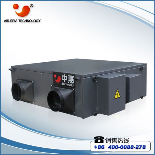 内置叉流式静止换热器,即冷、热气体的运动方向相互垂直,空气在平板上流动的过程中实现热交换,可以达到较高的热交换率。换热器主要是由亲水性铝箔材料制成,采用五层卷边密闭工艺,寿命长且温度传导论高,不会产生渗透,不会因为排气的渗透产生二次污染;选用优质空调*