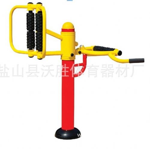 器材功能:放松背、腰部肌肉,消除疲劳,调节神经系统,达到保健、康复目的。背腰部有两条重要经络循行(督脉在背腰部正中、膀胱经在脊柱两侧),分布着人体所有脏腑相关的重要穴位,按摩背腰部可刺激很多穴位,可以疏经络,使气畅通,调整相关脏腑功能,提高人体抗病能力。使用方法:练习者手扶把手,身体靠住按摩器,上下左右缓慢移动
