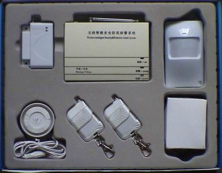 该报警器的基本功能是:当有人进入设防区域时,系统可按主人设定的模式实施现场警笛报警,并自动循环拨打事先设好的1-6组电话号码报警。