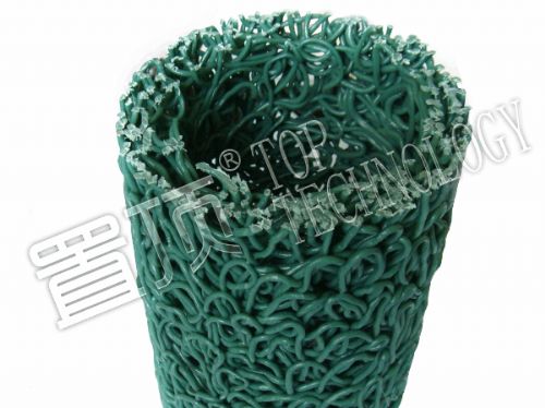 喷嘴挤压出纤维丝叠置在一起,并将其相接点熔结而成的三维立体多孔材料。在主体外包裹