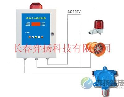 气体探测器构成系统,安装布网方便,对多个监控点集中控制。各通道自动显示,液晶背光,各通道自动巡检、锁定、设定,当环境中探测气体的浓度达到或超过预置报警值时,报警器立即发出声光报警,以提醒用户采取安全措施,并驱动排风、切断、喷淋系统,防止发生爆炸、火灾、中毒事故,从而保障安全生产。