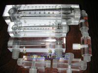 有机玻璃为主体的新型流量计,用来测量液体或气体单相非脉动的流量。它的特点是外形美观、重量轻、不易破裂、使用寿命长。当流体自下而上流经锥孔时,在浮子上下之间产生差压,浮子在此差压作用下上升,当使浮子上升的力与浮子所受的重力、浮力及黏性力三者合力相等时,浮子处平衡位置。因此流经流量计的流体的流量与浮子的上升高度,即与流量计的流通面积之间存在着一定的比例关系,浮子的位置高度可作为流量量度。流量计在安装时应取出填充物,垂直安装在无震动的面板或
