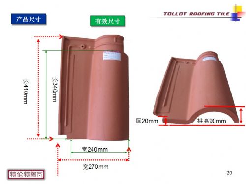 陶瓦制造历史悠久的法国,为欧洲著名陶土瓦品牌之一。广东韶关特伦特公司全线引进法国*先进的生产工艺技术和整套全自动生产设备,采用原生粘土作为原材料,所制造的原土陶瓦质感自然古朴极具人文艺术气息,产品质量*,规格型号种类丰富,生产能力及产品规格尺寸均为全国*大。特伦特陶土瓦的各项物理化学性能指标均达到欧洲陶瓦标准,为高档别墅和住宅公寓等建筑工程之*高端屋面装饰材料。