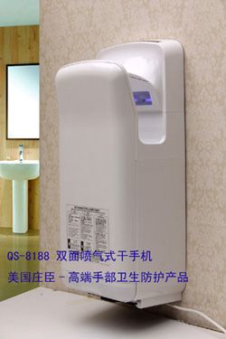 4、QS-8188庄臣双面喷气式干手机特别适合:食品饮料厂、生物制药厂、电子厂、机场、车站、酒店、写字楼等高端场所使用。