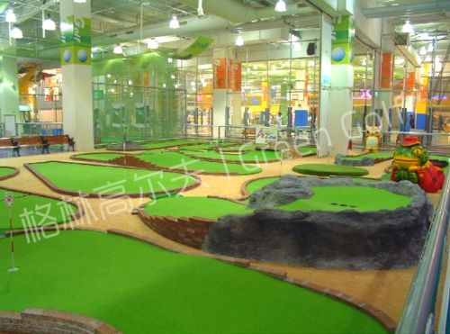 10、迷你高尔夫场地可做多种球法技巧练习、及果岭推杆练习,可以根据客户*的形状和尺寸以及难易度量身定做。