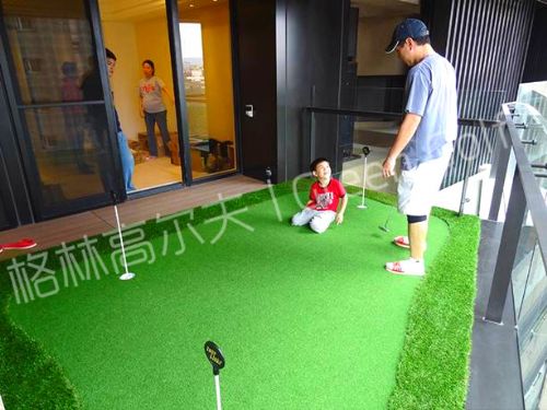 果岭,球洞周围的那块特殊的区域。主要用来做推杆进洞的,而我们的人工迷你果岭则是用专业的高尔夫人工果岭草代替真草而做的这一块区域,用来练习推杆进洞,它的面积大小灵活性强,大到一千平方,小到几十平方,便于人们进行推杆进洞练习,无论是在家里花园、别墅还是在办公室,公司阳台、楼顶设计那么一块迷你果岭,方便您体会高尔夫的乐趣。