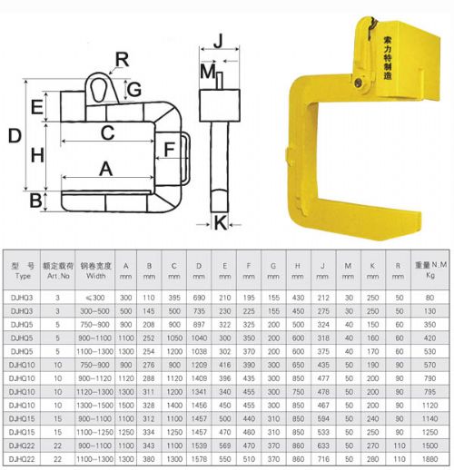主要用于卷板的水平吊运,因其外形酷似字面C,所以被人们称为C型吊具。其吊运和安装过程、结构简单合理、动作灵活、使用方便、吊运安全可靠。