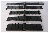 填充料,经塑炼,混炼, 压制成型,其品种规格较多,有桥型、山型、P型、R型、U型、Z型、乙型、T型、H型、E型、Q型等。该