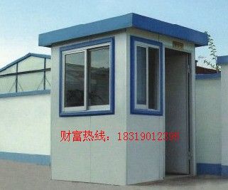 底座、墙面夹芯板和屋面板连接组成的房屋系统。施工快捷,整体可移动,特别适合于市政设施同野外建筑工地的门卫室、服务部等。