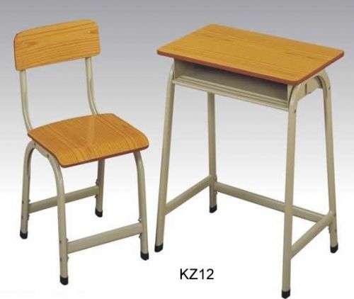 多层胶合板,表面贴防火贴面,桌面厚不小于16mm,椅面厚不小于9mm;课桌、椅腿部件材质为:30×60×1.2(mm)优质