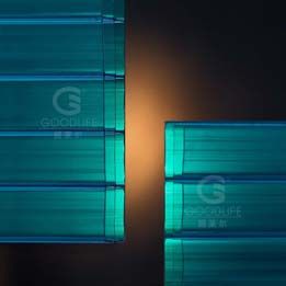 (3)防紫外线:PC板一面共挤有抗紫外线(UV)涂层,另一面具有抗冷凝处理,集抗紫外线、隔热防雾滴功能于一身。可阻挡紫外线穿过,及适合保护贵重艺术品及展品,使其不受紫外线破坏。