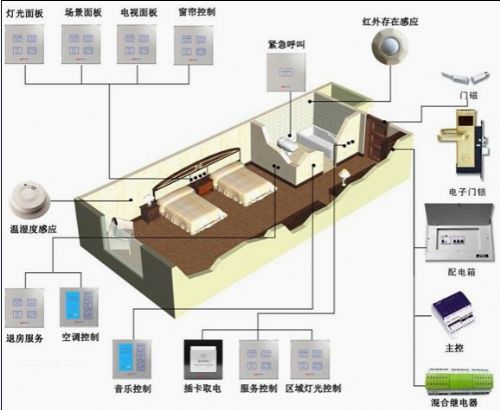 酒店随时保护客人的安全:通过智能卡和各处感应设备随时了解客人情况,便于更好的服务于客人,更加能够保护客人的酒店安全;客房设置紧急呼叫面板,即时处理突发事件;弱电控制强电,强电走墙体或吊顶,保证使用环境的安全因素;漏电监测并及时通知和切电;设置酒店服务人员智能卡权限,客房设备只能动用极少设备极大保护客人财产。