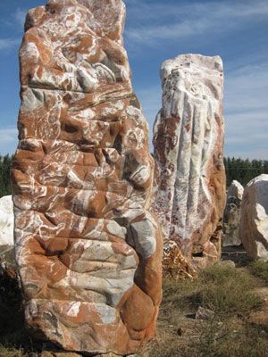 米黄玉风景石是本场的主要产品之一于晚霞红风景石并列销售*一,石质自然、造型各异,风景石