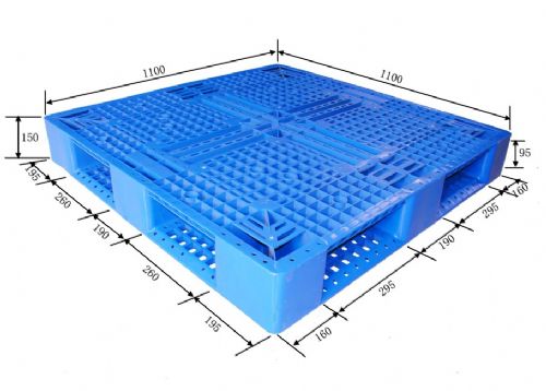 塑料托盘,使用范围广。本期给大家介绍的一款:LYDM1111A田字网格系列塑料托盘。他的主要尺寸为1100×1100×150mm,它的材料是菜用抗冲击hdpe,有效的提高了托盘的抗冲击能力和整体的一个坚固性。静止时它的*大载重量为4T,运动时*大载重量为1T,进叉形式为;四向进叉,使用方便。本系列塑料托盘采用的是单面标准,叉孔高:90mm,适合与电动