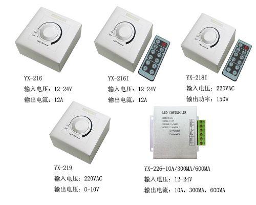 幕墙灯等;具有价格低廉,接线简单,使用方便等优点;通过红外遥控器和调光器上的旋钮进行亮度调节;灰度等级255级;带自定义功能、延时关机功能和固定灰度输出功能。