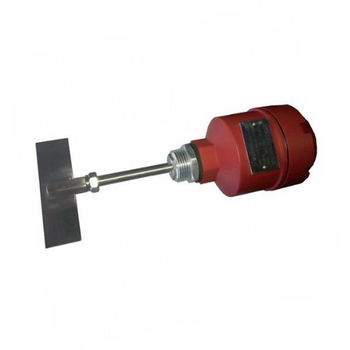 接线盒内安装有一仪表马达,其利用离合装置连接另一端带有叶片的传动轴。当没有接触到物料时叶片与马达沿传动轴保持同轴转动,当叶片接触到物料转轴受阻致使马达停止转动并作出报警信号。