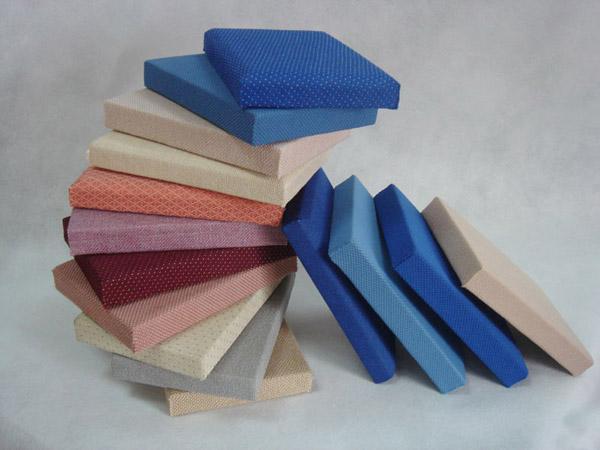 布艺吸音板特点:防火,防尘,装饰性强,施工简单,方角,大切角