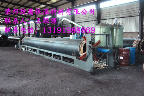 钢管外表面抛丸除锈处理和外护管内表面电晕处理工艺,进一步提高保温管的粘接性能。材料为密度60kg/m3至80kg/m3的硬质聚氨酯泡沫,充分添满钢管与套管之间的间隙,并具有一定的粘接强度,使钢管、外套管及保温层三者之间形成一个牢固的整体。