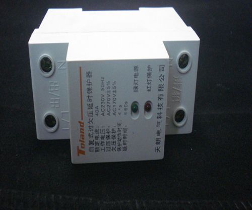 继电器为主电路、模数化标准设计,当供电线路出现过电压、欠电压时,保护器能在持续高压冲击下迅速、安全地切断电路,避免异常电压送入终端电器造成事故的发生,当电压恢复正常值,保护器将在规定时间内自动接通电路,确保终端电器在无人值守情况下正常运行。