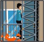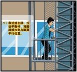 4、逃生梯每隔3.048米设有一个脚踏板并在其两侧设有护栏,防止逃生人员坠落。