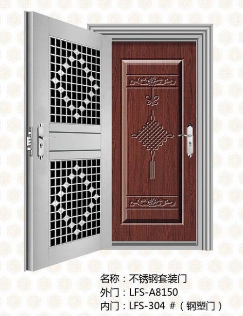 豪华不锈钢门LFS-A8150,采用标准1.0mm(可选)980*2080*200(可选),原料是国标304#不锈钢,有商标,产品质量有保证。双面