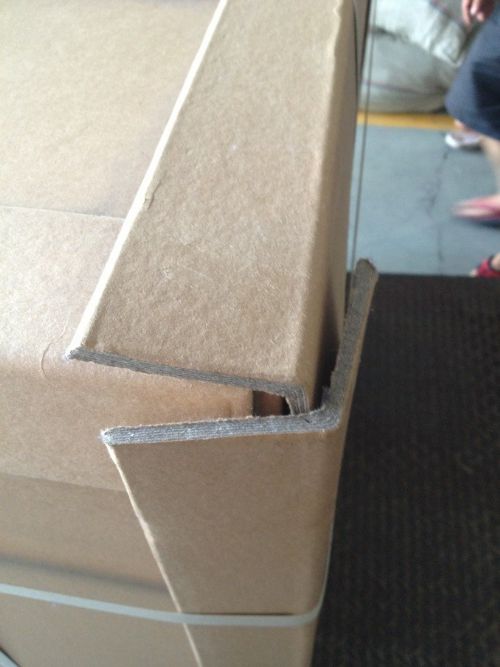 复贴后,经护角机定型压制而成,主要有L形和U形。用于货品堆码后,可加强包装物边缘支撑力并保护其整体包装强度,属于绿色环保