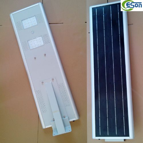 是一款智能控制室外太阳能照明灯。 它运用了微控制器,热红外线人体感应等多项优秀实用控制技术,结合简约的一体化结构设计(集