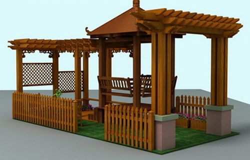 花架等,供人们歇息和欣赏自然美景,是户外地板、园林景观、木