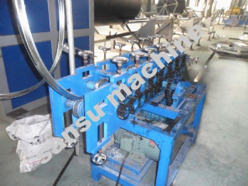 管道成型机上缠绕并熔接成管道。同时,将镀锌