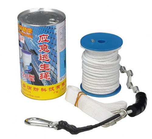 使用方法: 一旦建筑物发生火灾,无法从安全通道口出逃,应立刻打开包装,取出逃生绳,将逃生绳一端安全钩悬挂在窗口或牢固固定在建筑物上,然后迅速从窗口逃离火灾现场。应急逃生绳广泛用于家庭住宅、医院、宾馆、旅店、写字楼、公共娱乐、劳动密集型等场所,是可靠的火灾救生设施。