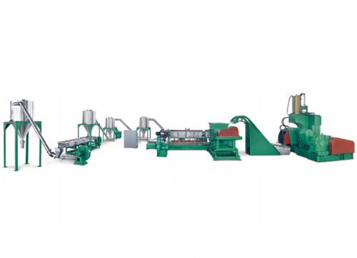 螺杆挤出机——液压板式自动换网——风冷模面热切造粒辅机——级旋风分离器——二级旋风分离器——风冷