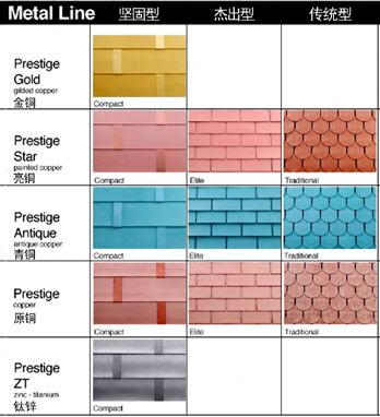 铜瓦随着时光的流逝,通过空气,雨水,阳光,铜瓦表面会生成一层具有自我保护作用的氧化铜,这种氧化铜在大部分地区的颜色均为深咖啡色活深色。而非氧化亮铜瓦则不同,通过由德高瓦公司具有专利权的先进技术工艺,在与铜表面可形成聚合物层,创造出了**性,非氧化性亮铜色铜瓦。效果在世界上很多历史悠久的铜建筑上都可看到。青铜瓦则是**青铜色,钛锌和铝镁锰则亦相同。