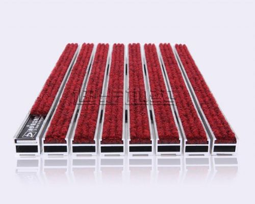 锁扣.承受力能在标准滚动之下可达到每平方1500kg-2000kg-3000kg不变形.面料采用德国纯尼龙刮尘面毯,,高约10 mm ,能阻燃,抗静电,没辐射,毯面耐磨可阻止泥土沙尘重复带入室内,从而保证了室内环境清洁和减少