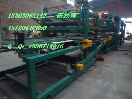 夹芯板复合机组由单层压型板机、复合板机组成一条流水线,集压型机、复合机先进的生产工艺于一体,能一次性复合成多种复合板,克服了传统板先压型后手工复合的缺点,且压型机、复合机各自能独立生产。全套流水线压型机部分由装料开卷系统、成型主机、切断装置组成,复合机部分由装料开卷、喂板、压筋、涂胶、加温、复合、卷边、翻边(企口用)、开槽、整边、气动、自动切割、工业电脑控制系统组成,本机采用精密低速
