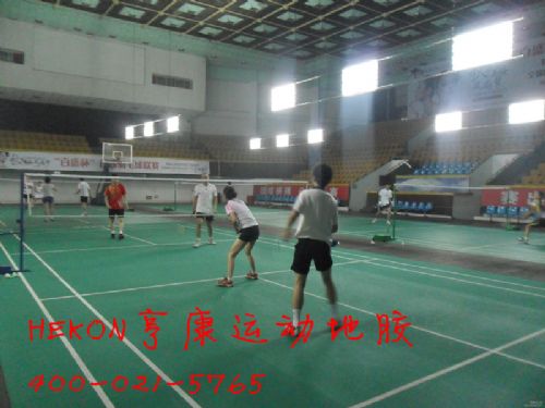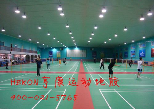 对于中高档羽毛球馆场地,我们建议选用选择亨康牌绿色4.5mm荔枝纹08601/皮纹08302