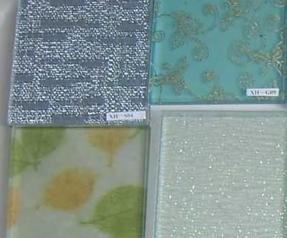 ,是两片玻璃间夹入强韧而富热可塑性的多片中级膜或者画类或者丝类或者顾客喜欢的图案而成的。不易在受撞击下被贯穿,且破损后其玻璃片不易飞散,适用家庭内装。